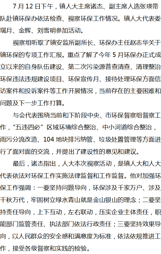 洞泾镇人大领导视察镇环保工作