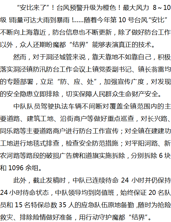 洞泾城管严阵以待、彻夜备勤,守护魔都“结界”